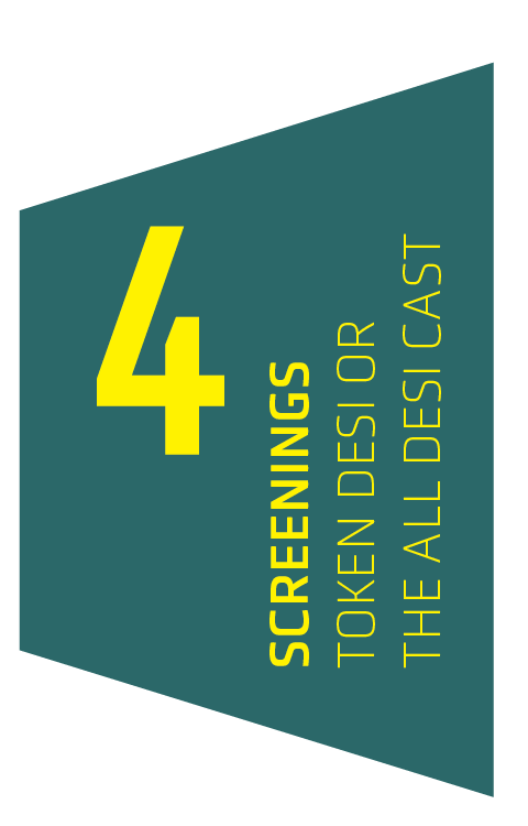 Identity inspired by hand-painted typography that is characteristic of South-Asian signage and plays with its inherent two-dimensional three-dimensionality (flat/planar three-dimensionality) to allude to the dimensionality of desis in film and television.