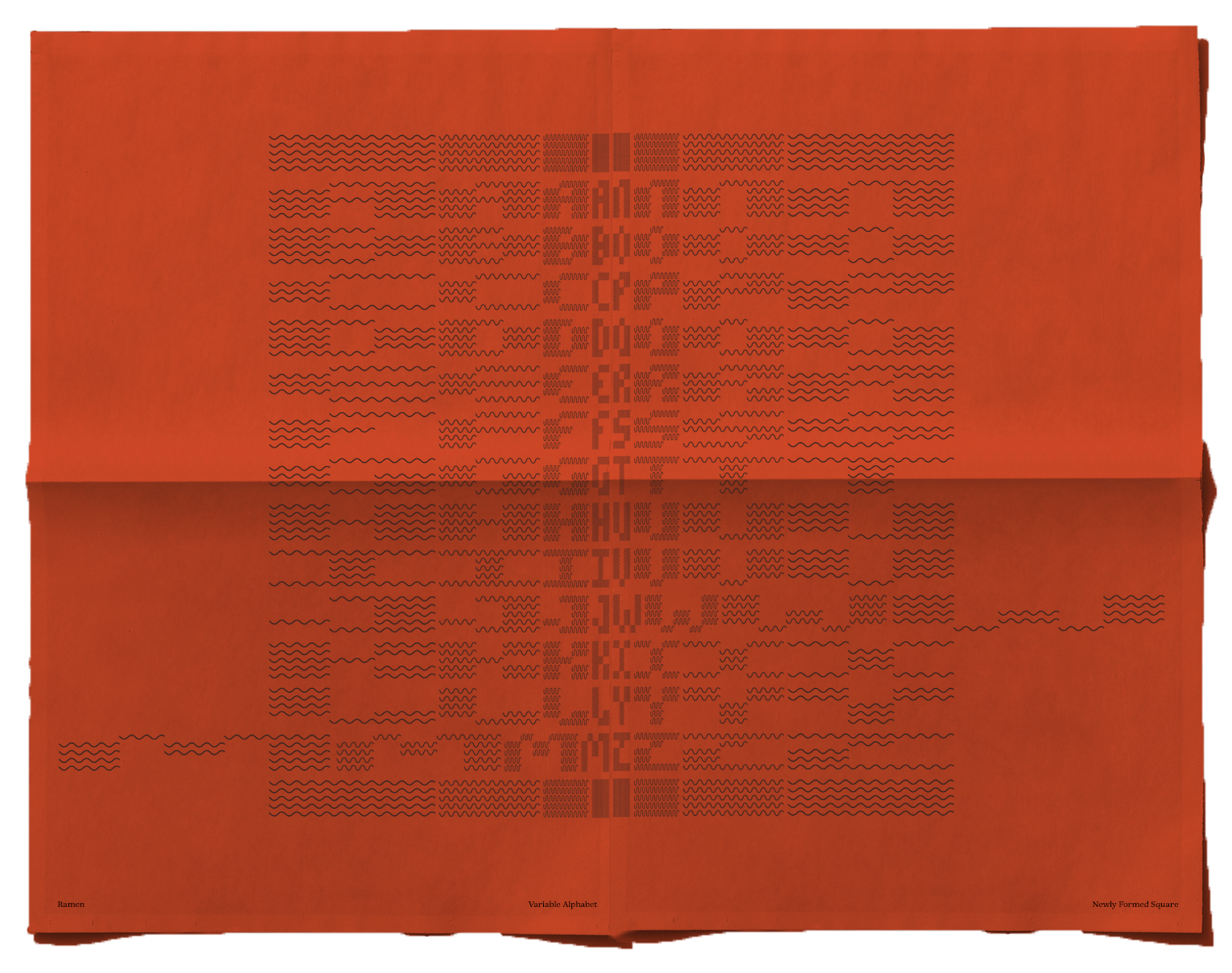 inspired by instant noodles with the variable being cooking time affecting the thickeness and shape of the letterforms